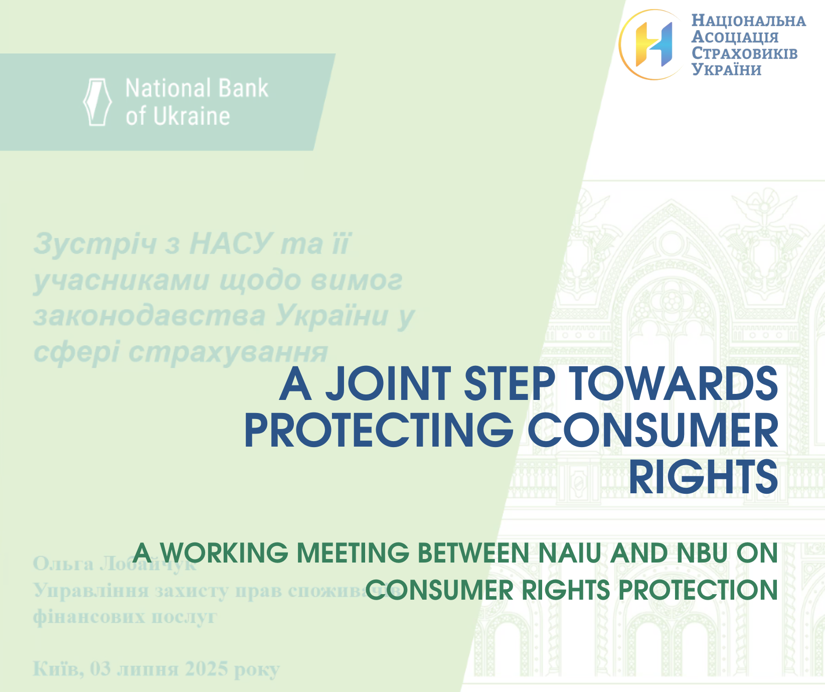 The National Association of Insurers of Ukraine (NAIU) held an important and productive working meeting with representatives of the Consumer Rights Protection Department of the National Bank of Ukraine (NBU).