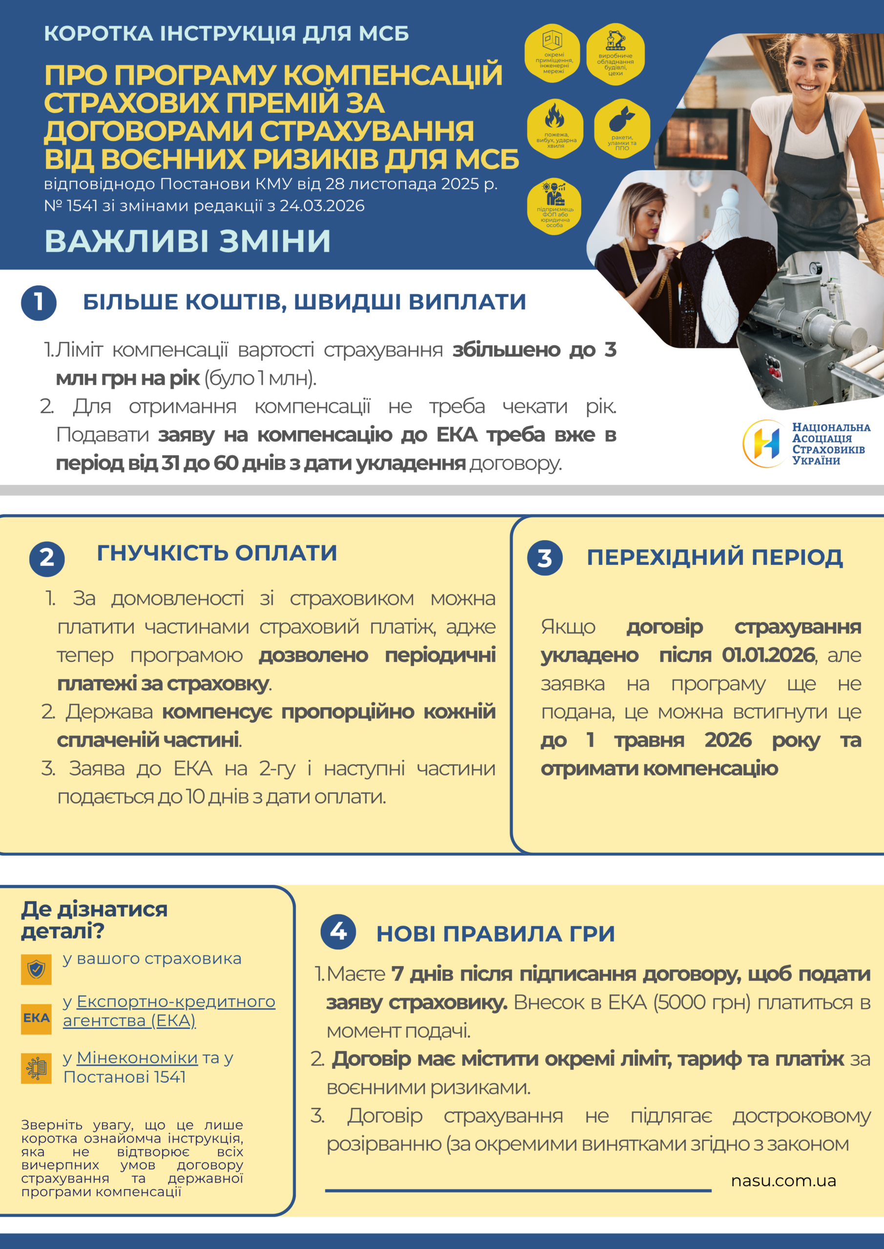 Однією з найважливіших змін є радикальне підвищення фінансової підтримки. Раніше загальний граничний розмір компенсації для одного суб’єкта господарювання протягом календарного року становив 1 млн гривень. Оновлені правила збільшують цю суму втричі — тепер бізнес може розраховувати на компенсацію до 3 млн гривень сумарно за всіма договорами страхування, термін дії яких закінчився у відповідному році.